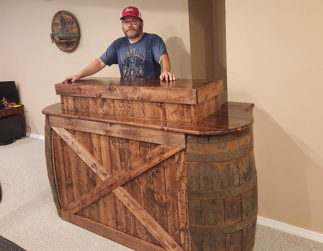 Creating new projects from used reclaimed whiskey barrels is my hobby turned career. I use every piece, from the lid to the metal bands as brackets, it is all repurposed. Each barrel project is crafted to meet and exceed your expectations. Barrel cabinet, shelf, stogie holder, laser engraved staves and signs, and many other laser engraved products. From rustic to options of paint and stain to meet your style. Choose Jason's Barrels for your woodworking and barrel crafting needs, my experience will prove the difference in quality and service. Your satisfaction is our priority!
